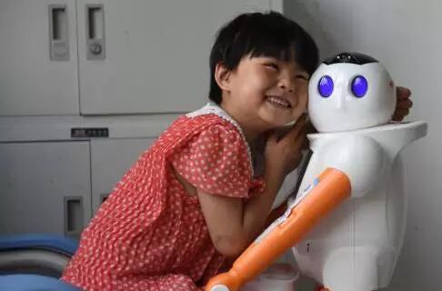 记者在病房内看到,这台机器人大约有一米多高,圆脸的卡通形象十分憨厚。不仅能进行人机对话,还能唱歌跳舞。虽然在小庆泽的眼里机器人跳的舞实在太笨了,但她还是开心的抱着机器人的头,咯咯笑了起来。