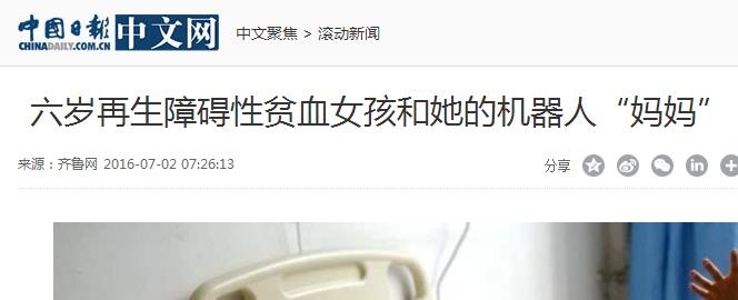 由于没有家人陪伴,医院为小庆泽带来了医院引进了一台智能机器人“旺仔”,对孩子进行陪护。在无亲人陪护的病房里,医院陪护机器人“旺仔”既是女孩的朋友,也是她的“妈妈”。科幻电影《机器人总动员》中的夏娃、迪士尼电影《超能陆战队》中的医护机器人“大白”,已成为全球影迷的心中最可爱的形象。