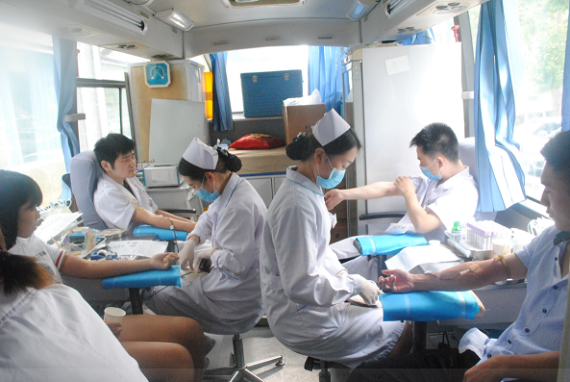2017年7月20日早上8点半,济南市血液供保中心的血液采集车准时来到了济南血液病医院门诊楼前,等待献血的医生、护士和其他工作人员,早早的排起了长队,无偿献血活动马上要开始了。