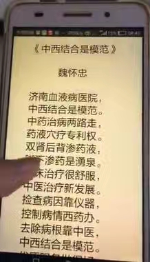 济南血液病医院获患者赠诗,诗文如下: