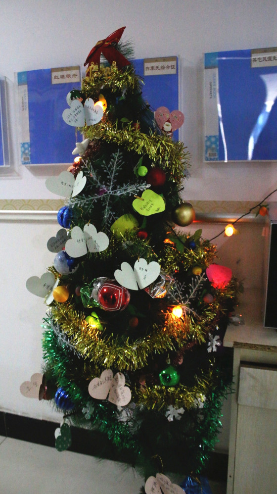在双旦即将来临之际,我们的医务人员早早的便开始装扮环境,制造氛围,迎接节日的到来,吸引了患者们的关注目光,拥有了更多的期待。看着圣诞树一点点的装扮起来,医院里的圣诞氛围格外浓烈。