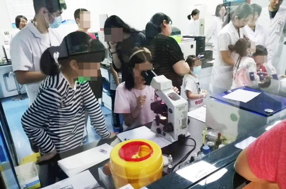“原来我们抽血化验的结果,是这样出来的!”小患者朋朋(化名)发出一声惊呼。每个小朋友都仔细看着显微镜里的血液标本,而检验科的医生,也为她们详细讲解了血液检查指标的各种特性。