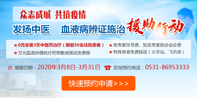 为让广大血液病患者共享中医药治疗的好处,本次援助期间,凡到济南血液病医院办理住院治疗的患者,均可申请0元享受3天中医药治疗。